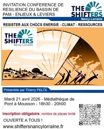 - Les Shifters de Nancy-Lorraine interviennent en soutien au Shift Project, centre de réflexion oeuvrant à la décarbonation de l’économie. Sans idéologie, ni dogmatisme, nous mobilisons nos compétences afin de sensibiliser au changement climatique anthropique, faire prendre conscience du nécessaire renoncement aux énergies fossiles et développer une sobriété énergétique, seule porteuse d’une résilience territoriale face aux aléas climatiques.